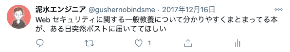 今年の6月に改訂版が出版される、という話も出ていて、 Web API、JavaScript のセキュリティについてや、安全でないデシリアライゼーション、XXE に関する解説が追加されるそうです。未読の人は、ちょうどいいタイミングなので読んでみるといいんじゃないでしょうか。