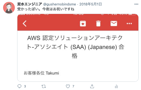 で、いけそうかな?という自信がついてきたので秋葉原の試験会場を予約して受験。5/1 に無事合格判定をもらえました。すごいあっさりしたメールで通知が来るのでちょっと不安になる。