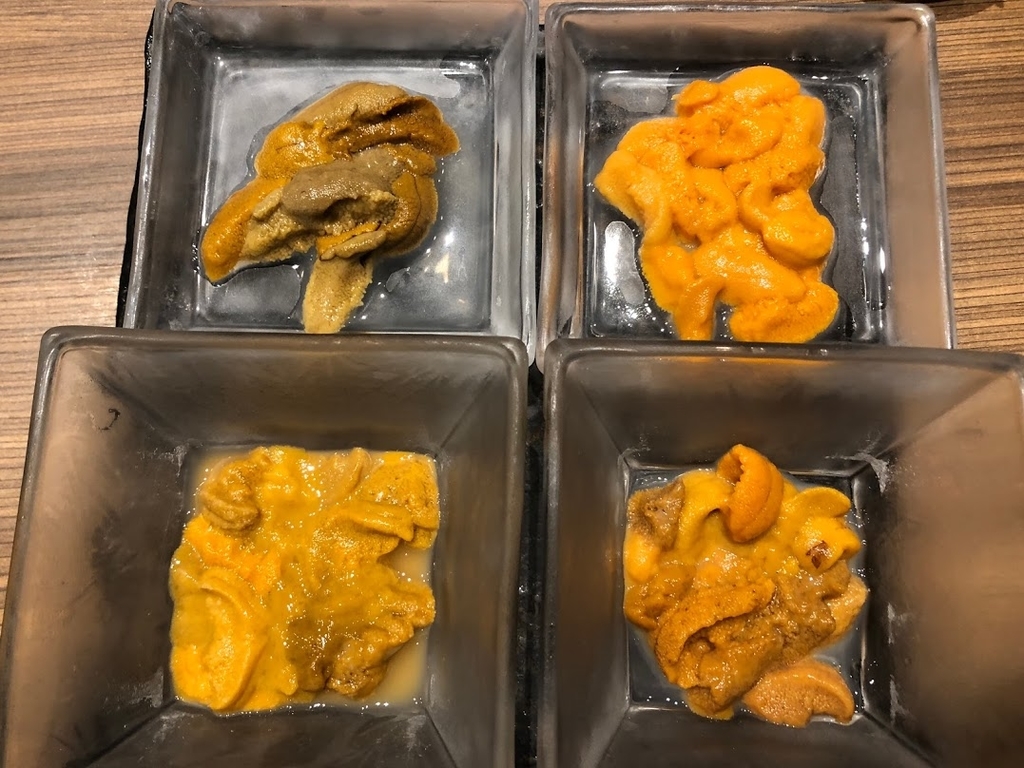 写真は『うに小屋』渋谷店のウニ4種盛りです。